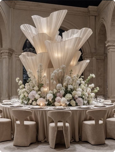 From concept to completion, we create seamless, design led events that leave a lasting impression. Our event décor and management services are tailored to meet your specific needs whether that includes décor only, partial planning, or full service event management. Each detail is thoughtfully planned through collaborative meetings, organized workflows, and creative brainstorming, then brought to life through AI powered 3D renderings ensuring a refined and confident execution.